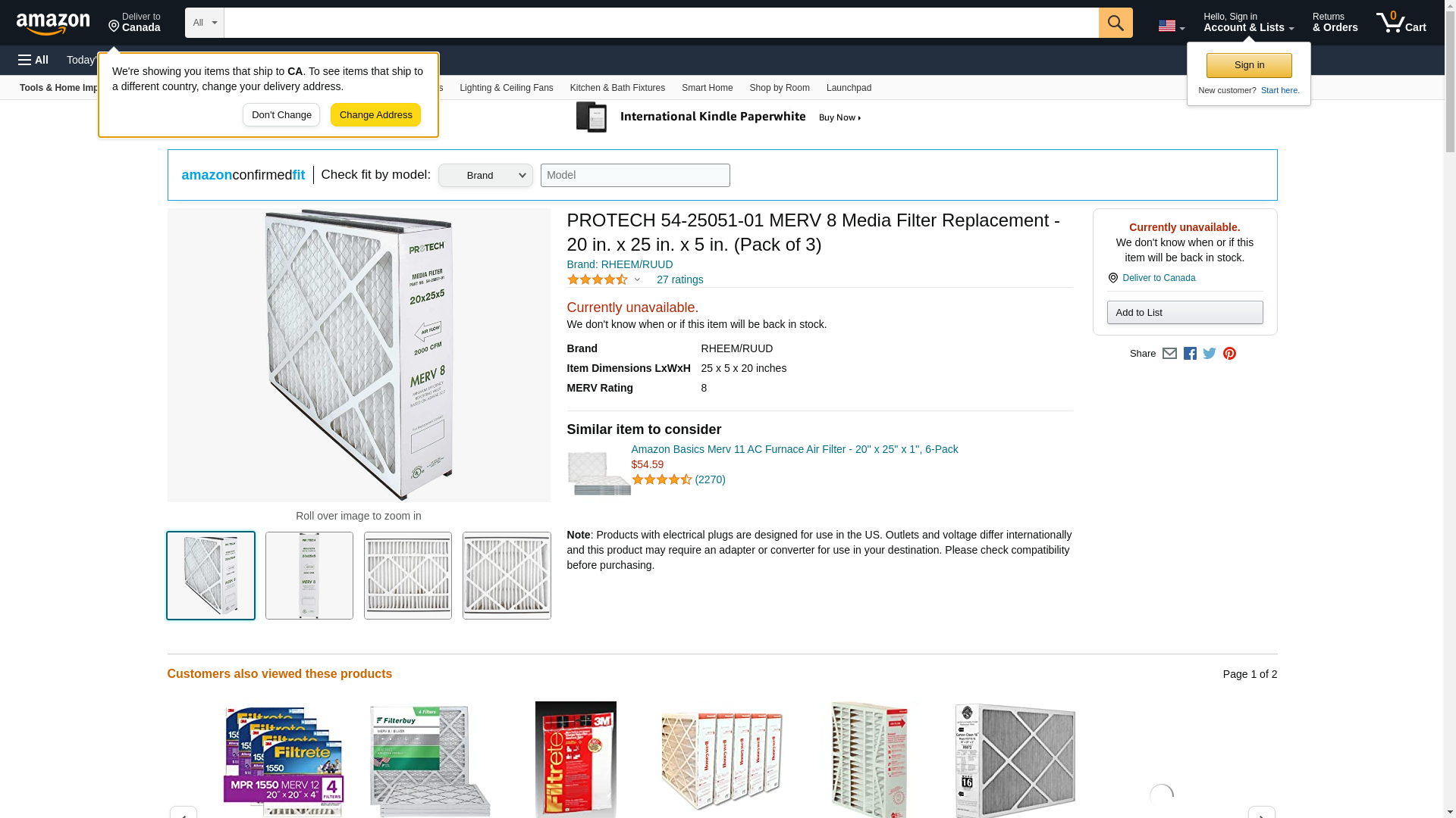Rheem and Ruud Replacement Media Filter 20x25x5; This is a NEW MERV 11 from Trion. (Replacement for PROTECH MERV 8) 20x25x5, actual size 19 3/4x24 1/4x4 7/8; with foam strip for better fit. 54-25051-01, (ACABT)