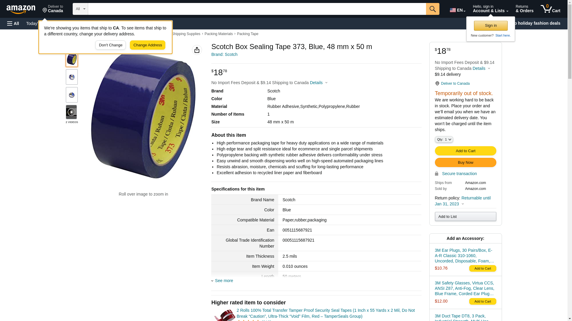 Scotch Box Sealing Tape 373 Blue, 48 mm x 50 m, High Performance, Conveniently Packaged (Pack of 1). Adhesive sticks ...
