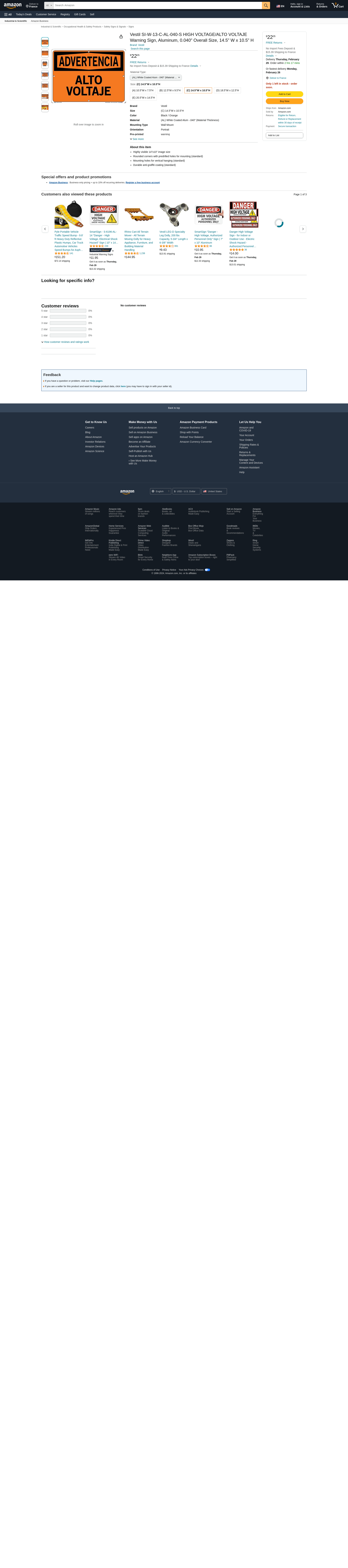 Vestil SI-W-13-C-AL-040-S HIGH VOLTAGE/ALTO VOLTAJE Warning Sign, Aluminum, 0.040" Overall Size, 14.5" W x 10.5" H