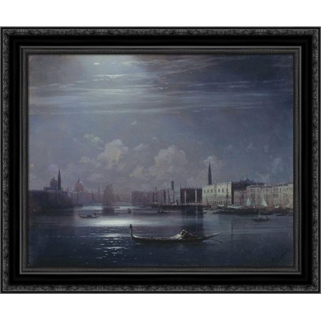 Night landscape. Venice 24x20 Black Ornate Wood Framed Canvas Art by Aivazovsky, Ivan
