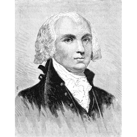 James Madison (1751-1836) Nfourth President Of The United States Line Engraving 19Th Century Rolled Canvas Art - (18 x 24)