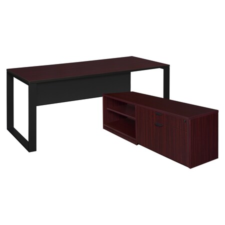 Regency with Laminate Low Credenza Structure L-Desk, 72" x 30", Mahogany