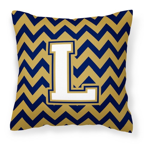 Carolines Treasures CJ1057-LPW1414 Letter L Chevron Navy Blue & Gold Fabric Decorative Pillow