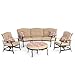 Hanover TRADITIONS4PC-BRY Traditions 4 Piece Seating Set with Reversible Ottoman and Accent Pillows Outdoor Furniture, Brown/Tan/Red