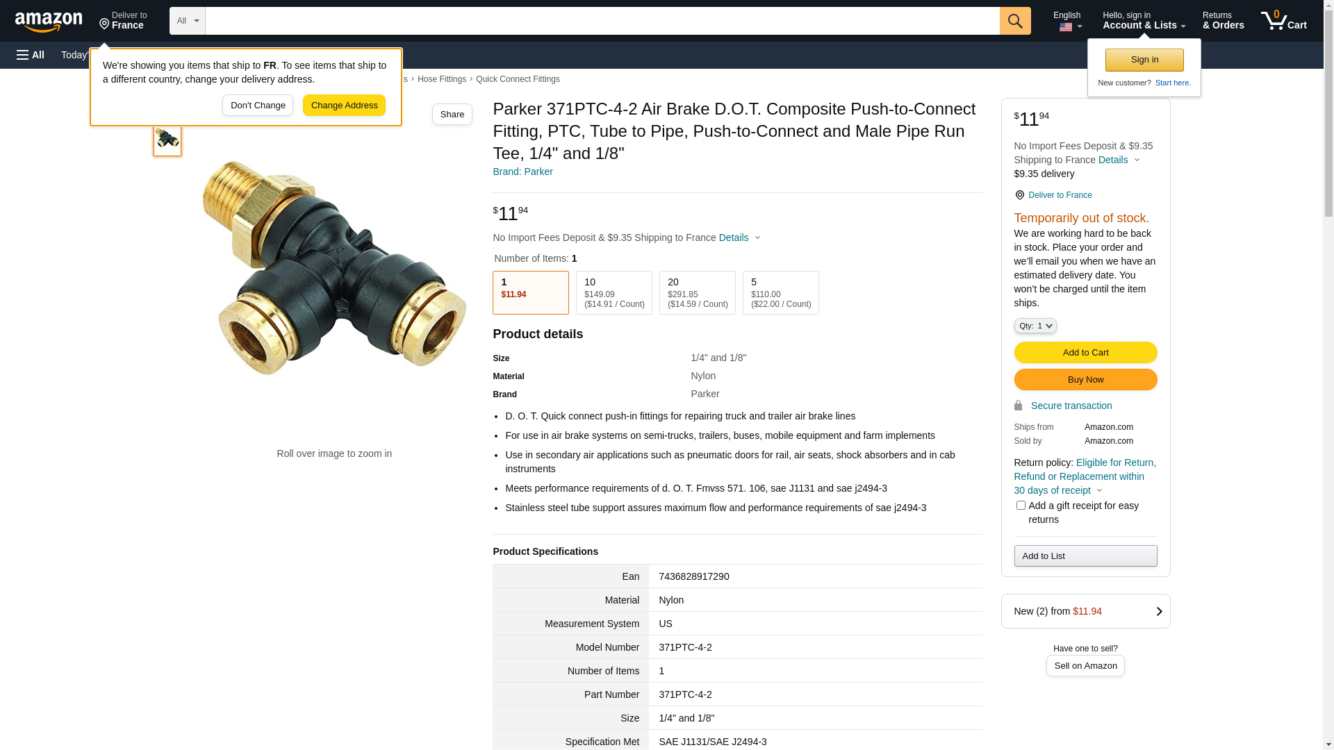 | Airline Hydraulics | PARKER 371PTC-4-2 | 1 | 1 | 1 @ $19.81 | |