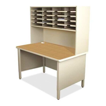 UTIL0072/UT Finish: Putty Features: -Mailroom collection. -Material: Heavy duty steel. -20 Fixed sorter pockets. -Open under worksurface. -Leveling glides on each leg. -Textured powder coat one of the most durable high quality finishes. Number Of Compartments: -20. Country of Manufacture: -United States. Product Type: -Mailroom organizer. Dimensions: -Minimum height: 60". Overall Height - Top to Bottom: -68". Overall Width - Side to Side: -48". Overall Depth - Front to Back: -30". Overall Product Weight: -175 lbs.