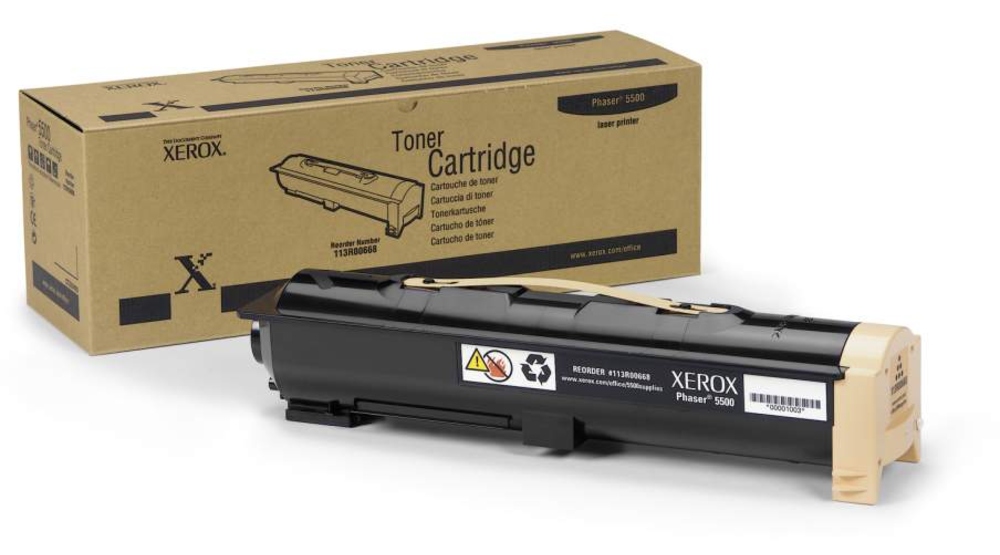 Xerox 113R00668 Toner Cartridge for Xerox Phaser 5500DN.This is a compatible Xerox 113R00668 / 113R668 black laser toner cartridge guaranteed to perform with your Xerox Phaser 5500 laser printer. It replaces the original Xerox 113R00668 laser toner cartridge. The compatible replacement 113R00668 laser toner cartridges and supplies (also known as generic) are specially engineered to meet the highest standards of quality, reliability and exceptional yields that meet or exceed OEM (Original Equipment Manufacturer) standards for the 113R00668 and offer high-quality printing results. Containing new parts including wiper blades, and other internal parts, they are an economical alternative to expensive OEM 113R00668 Xerox laser toner cartridges and supplies, and offer big savings over brand-name 113R00668 laser toner cartridges and supplies. The use of compatible replacement laser toner cartridges and supplies does not void your printer's warranty.We offer a 100% Quality Satisfaction Guarantee on our compatible 113R00668 laser toner cartridges and supplies.