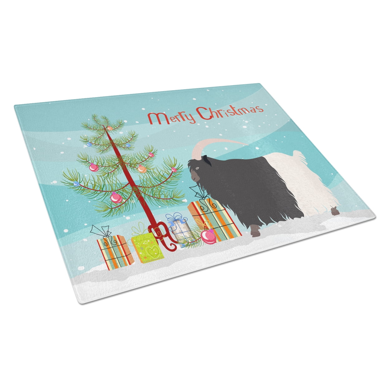 Caroline's Treasures BB9254LCB Welsh Black-Necked Goat Christmas Glass Cutting Board Large, Teal Decorative Tempered Glass Kitchen Cutting and Serving Board Large Size Chopping Board