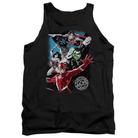 Trevco Jla-Galactic Attack Adult Tank Top, Black - 2X