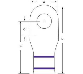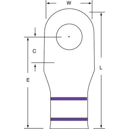 One-Hole Lug Compression Connector, Barrel Size Short, Color Code Purple, Die Code 15, Tongue Angle Straight, Tongue Width 1 in, For Conductor Material Copper, For Stud Size 1/2 in, For Stranded Copper Wire Size - Maximum 4/0 AWG, Inspection Hole No, Hole Center to Center Not Applicable, Material Copper, Termination Style Crimp, Seam Style Seamless, Standards UL Listed, Number of Holes 1, RoHS Compliant Yes, Barrel Inside Diameter 0.56 in, Barrel Style Seamless, Connector Type Straight Barrel