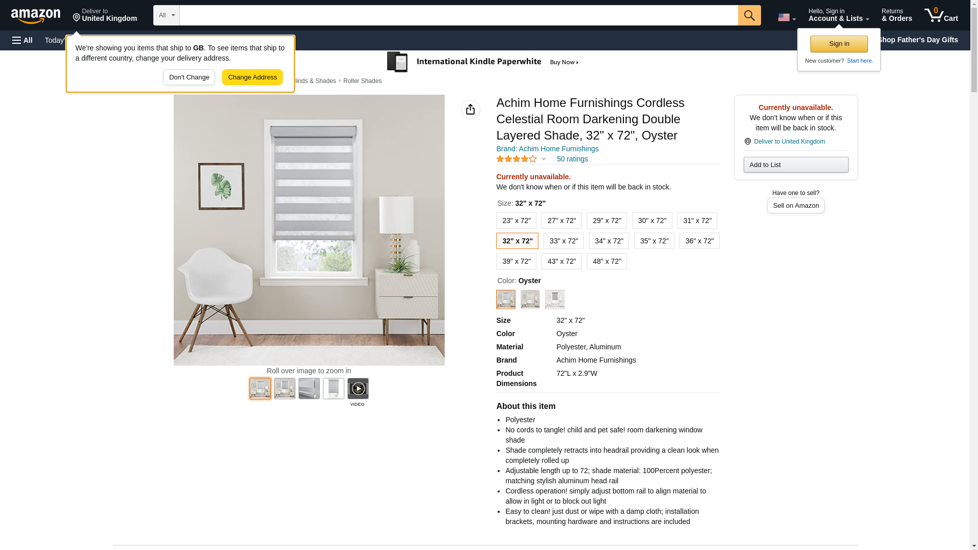 Achim Home Furnishings Cordless Celestial Room Darkening Double Layered Shade, 32" x 72", Oyster