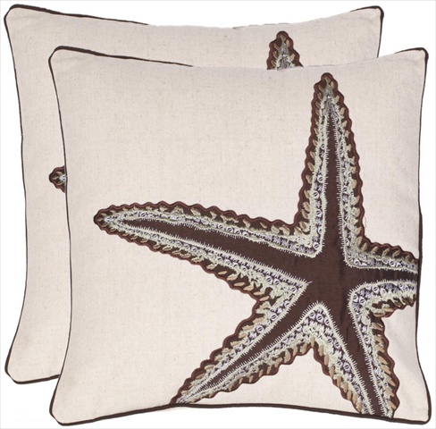 Safavieh Pillow Collection 18-Inch Sea Star Pillow, Ivory and Brown, Set of 2
