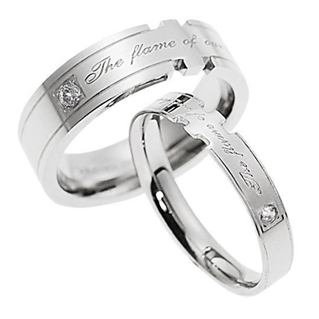 CET Domain SZ17-R022W-6 Titanium Steel Flames of Love Couple Rings- Women-Size 6