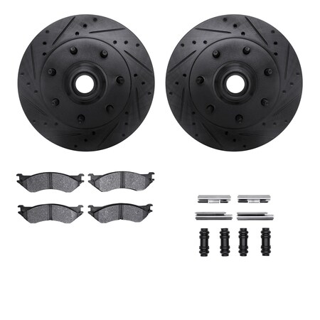 Dynamic Friction Company Front Brake Rotors Drilled and Slotted Black with Heavy Duty Brake Pads includes Hardware - 8212-99141