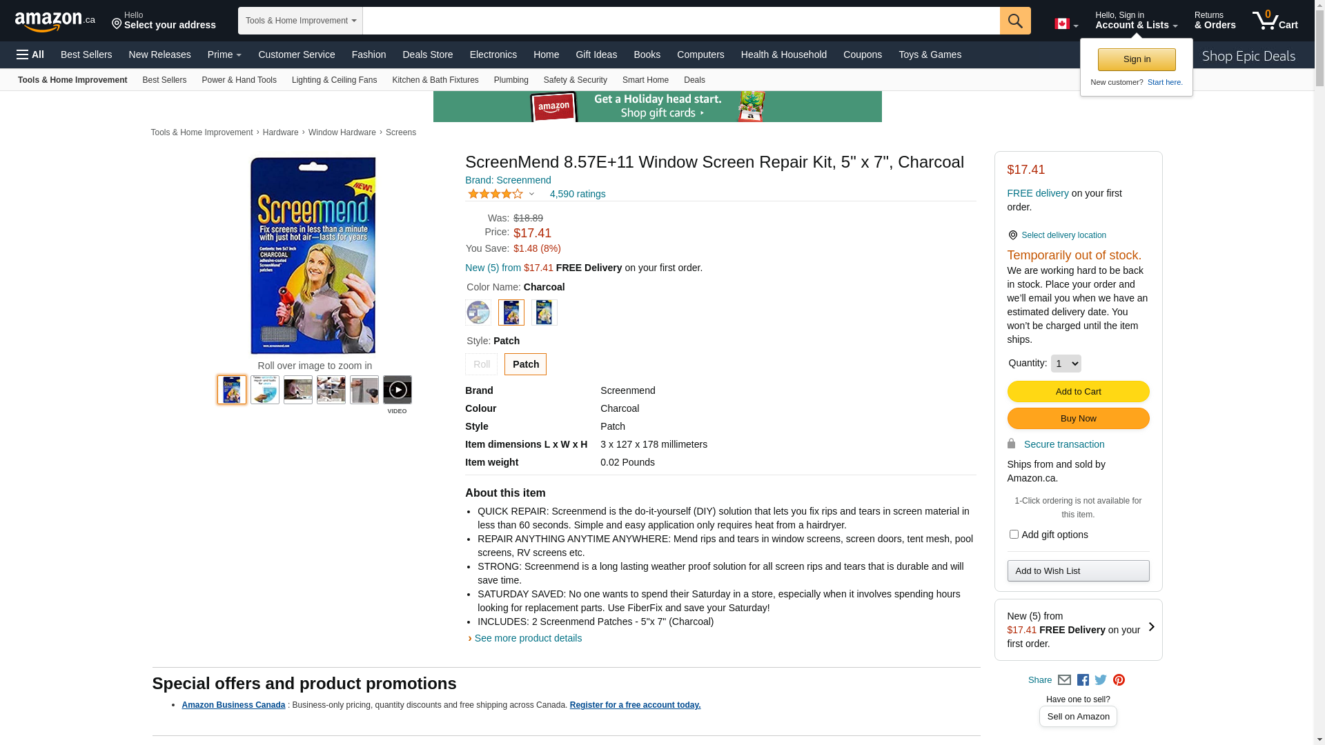 ScreenMend 8.57E+11 Window Screen Repair Kit, 5" x 7", Charcoal