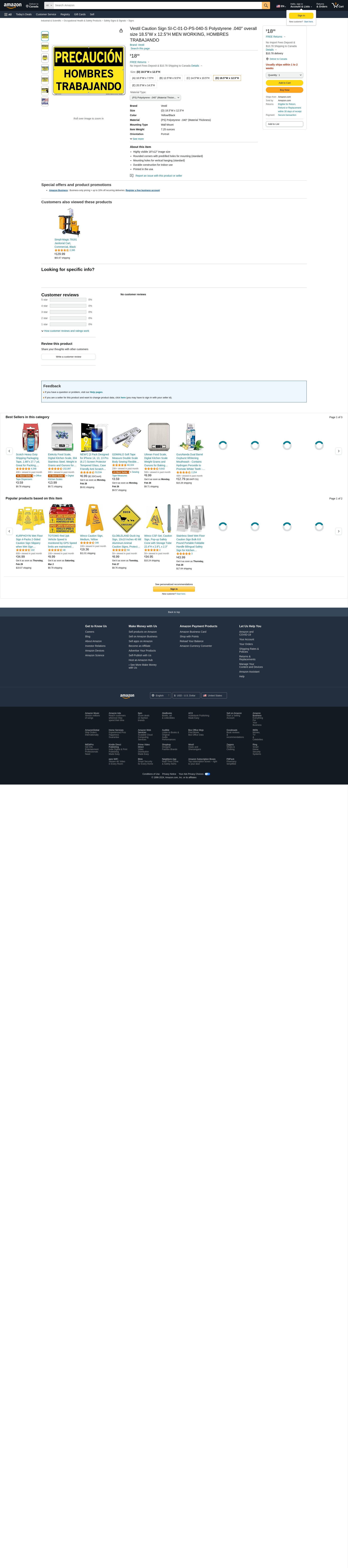 Vestil Caution Sign SI-C-01-D-PS-040-S Polystyrene .040" overall size 18.5"W x 12.5"H MEN WORKING, HOMBRES TRABAJANDO