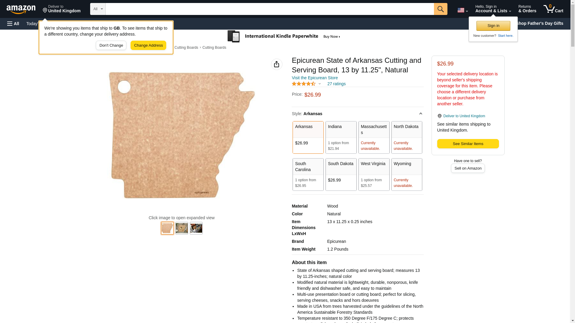 | Feature | Mississippi shaped cutting and serving board, measures 16 X 14-Inches |