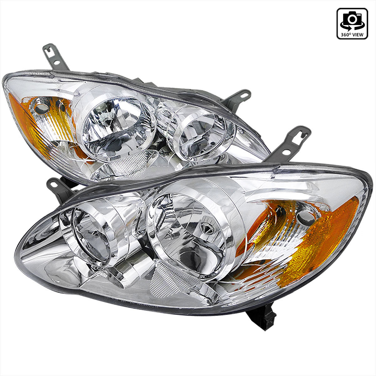 Spec-D Factory Style Headlights w/ Amber Reflectors (Chrome Housing/Clear Lens) Toyota Corolla 2003-2008 | 2LH-COR03-RS