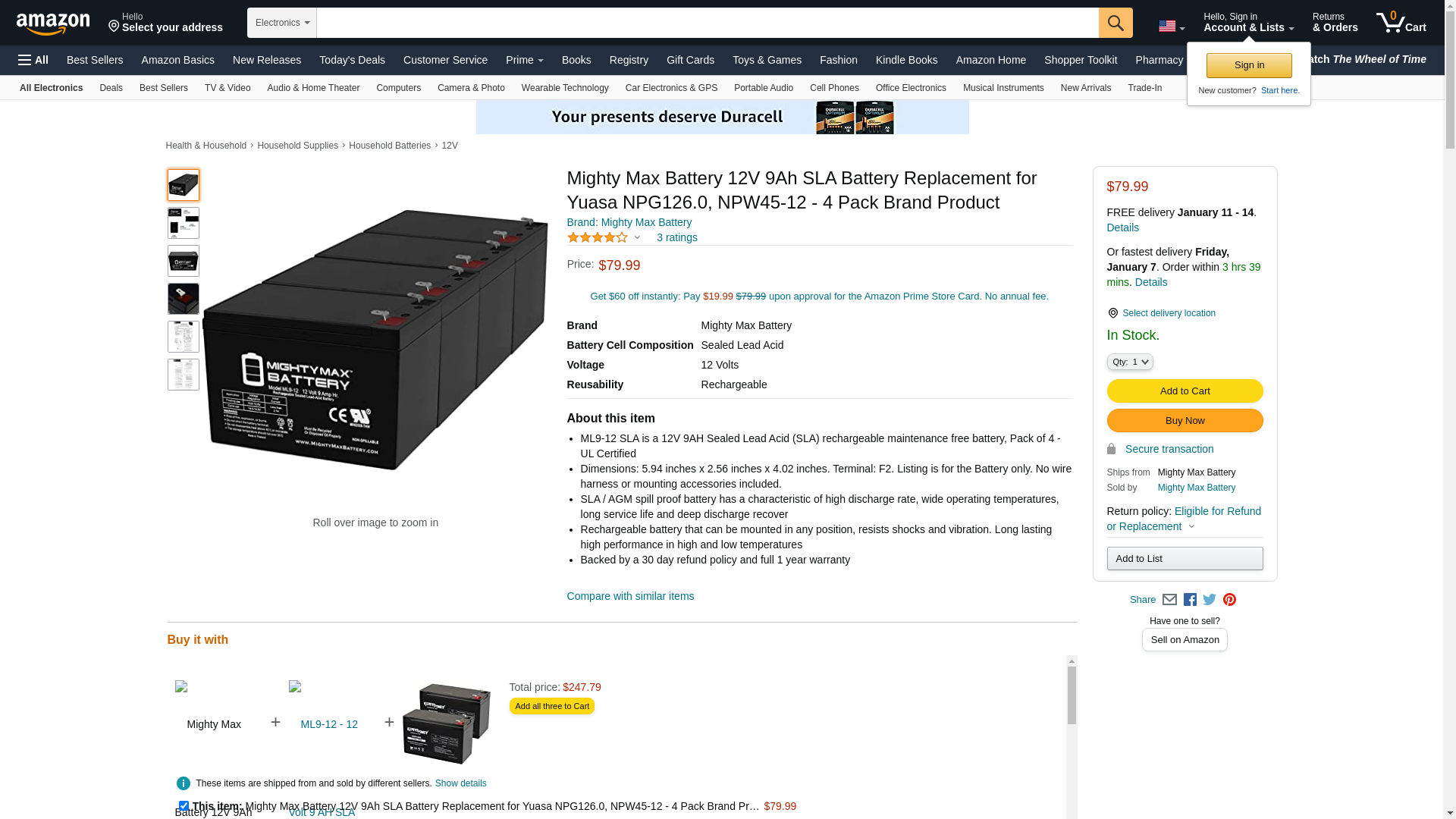 - ML9-12 SLA is a 12V 9AH Sealed Lead Acid (SLA) rechargeable maintenance free battery, Pack of 4 - UL Certified