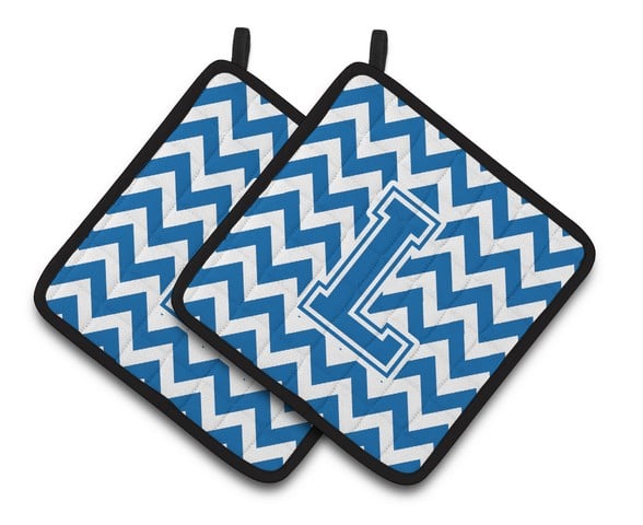 Caroline's Treasures CJ1056-LPTHD Letter L Chevron Blue and White Pair of Pot Holders, 7.5HX7.5W, Multicolor