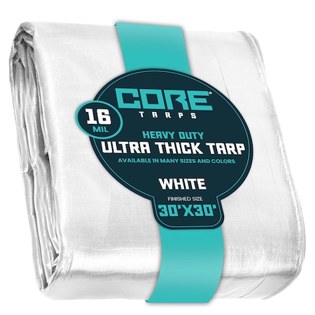 Core Tarps Extra Heavy Duty 16 Mil Tarp Cover, Waterproof, UV Resistant, Rip and Tear Proof, Poly Tarpaulin with Reinforced Edges for Roof, Camping, Patio, Pool , Boat (White 30′ X 30′)