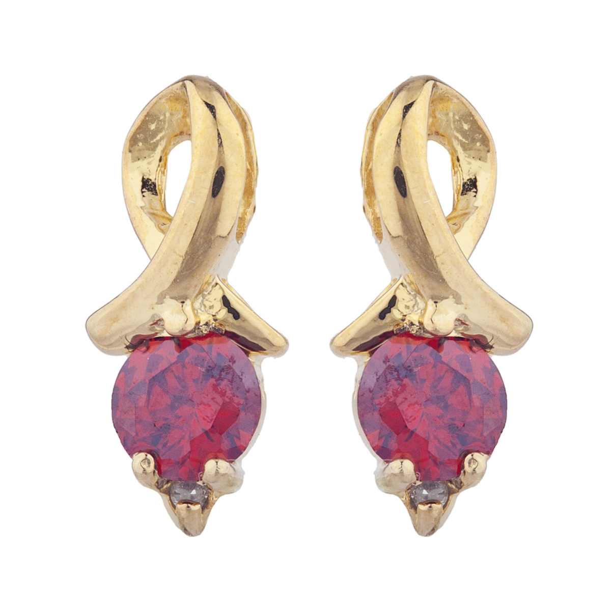 Elizabeth Jewelry ER1303-GAR-YGP 14kt Yellow Gold Plated Garnet & Diamond Round Design Stud Earrings