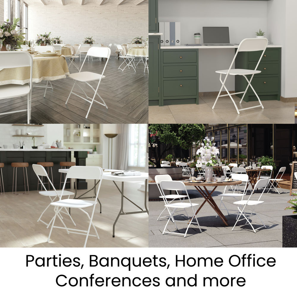 Flash Furniture Spacious & Contoured Commercial Wide & Tall White Plastic Folding Chairs-4 Pack