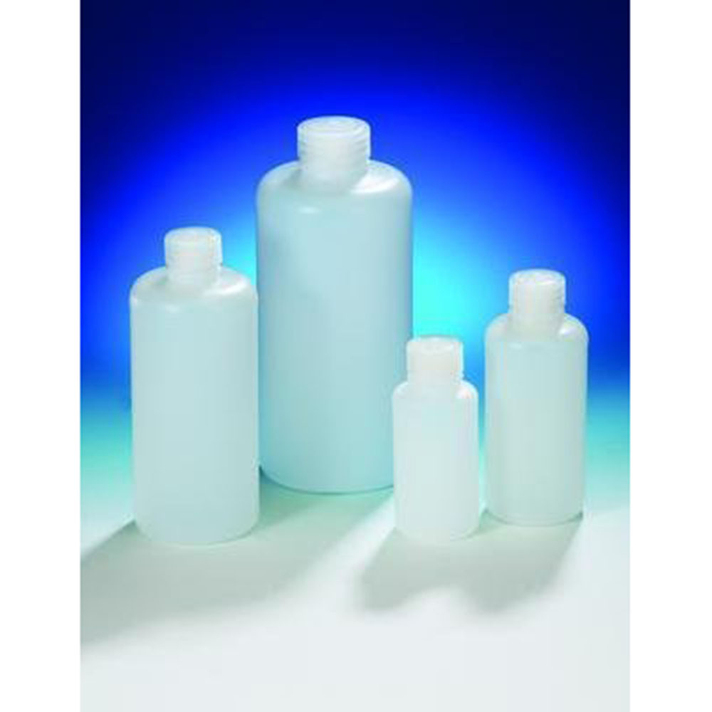 Translucent Precisionware - Narrow-Mouth Bottle - High-Density Polyethylene, (case of 100) Polyethylene 500ml (16oz) Rigid high-density polyethylene, laboratory/pharmaceutical grade bottles have matched polypropylene closures and leakproof design. They are ideal for packaging and storage of liquids and powders. Bottles 250ml (8oz) and larger feature recycling code molded into base. 12 per bag except 1000ml, 6 per bag.