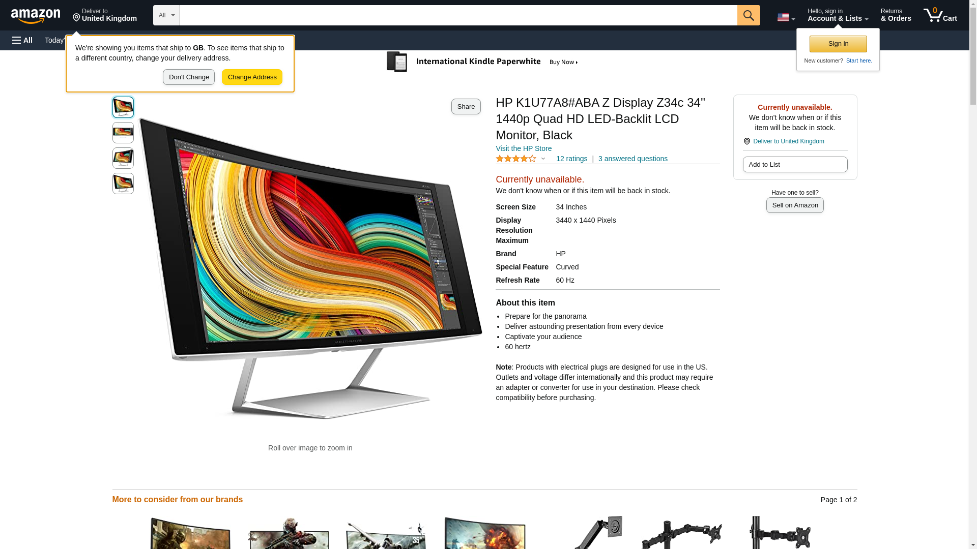 HP K1U77A8#ABA Z Display Z34c 34'' 1440p Quad HD LED-Backlit LCD Monitor, Black