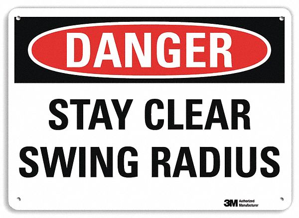 Danger Sign, Vertical Rectangle, Number of Printed Sides 1, English, Sign Format Traditional OSHA, Sign Legend Stay Clear Swing Radius, Sign Legend Background Color White, Sign Legend Style Text