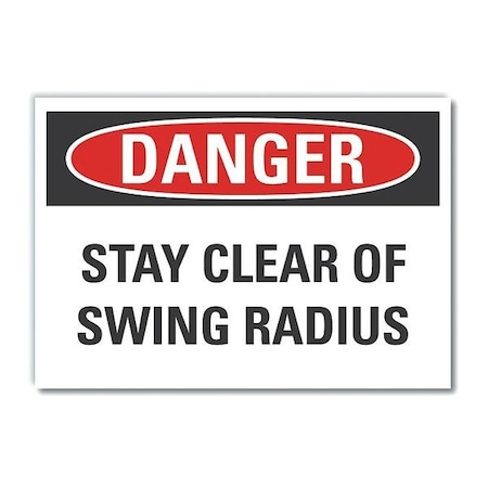 Stay Clear Danger Label, Horizontal Rectangle, Number of Printed Sides 1, English, Sign Format Traditional OSHA, Sign Legend Stay Clear Of Swing Radius, Sign Legend Background Color White, Sign Legend Style Text