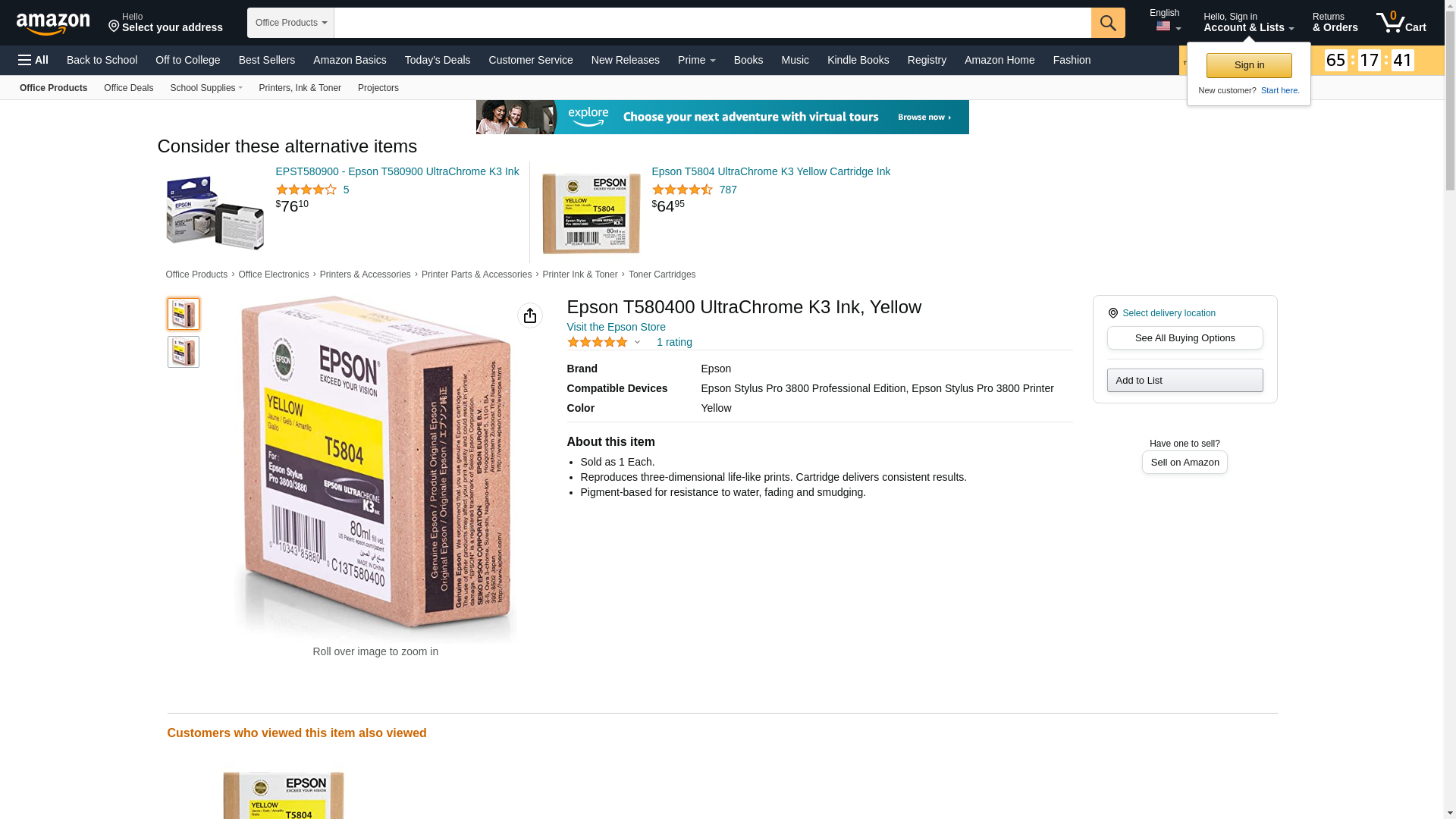 Epson T580400 UltraChrome K3 Ink, Yellow