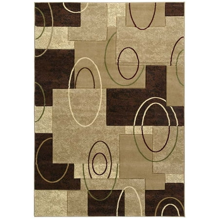Designer Home Angles Area Rugs - 510-20526 Contemporary Beige Geometric Squares Ovals Shapes Rug