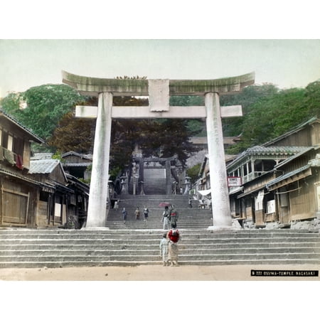 Stretched Canvas Art - Japan: Temple, Nagasaki. /Nthe Entrance To Osuwa Temple, Nagasaki. Tinted Photograph, C1900 - Medium 18 x 24 inch Wall Art Decor Size.