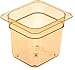 The Carlisle 3088513 sixth size, 6" deep, high heat food pan (-40?F to 375?F) is a single solution for cold storage, flash-freezing, microwave preheating and cooking as well as prolonged high temperature retention in steam table applications. Use the amber 2.5 quart pan to assemble, transport and display finished foods and toppings of all temperatures at events and buffet stations. Molded-in capacity indicators (quarts and liters) display measurement and facilitate portion control. A smooth rounded interior makes every scoop count and reduces food waste. The textured exterior edges resist scratching and offer improved handling. The pan is stackable for convenient storage. It is also compatible with Carlisle StorPlus Universal and Smart Lids (sold separately). It is NSF Listed, BPA Free and dishwasher safe. The food pan has overall measurements of 6.75 x 6.38 x 6 inches (L x W x D).