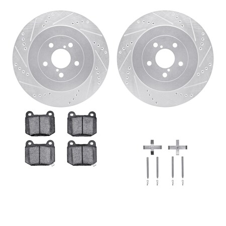 Dynamic Friction Company Rear Brake Rotors Drilled and Slotted Silver with 5000 Advanced Brake Pads includes Hardware - 7512-13017
