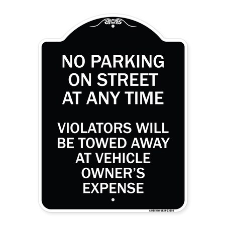 No Parking on Street at Anytime Violators Will Be Towed at Owner Expense Aluminum Sign