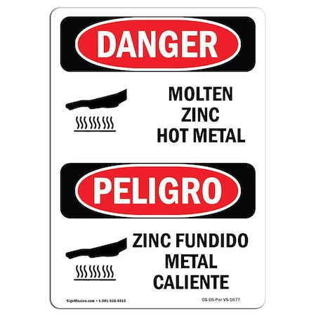OSHA Danger Sign, Molten Zinc Hot Metal Bilingual, 18in X 12in Aluminum
