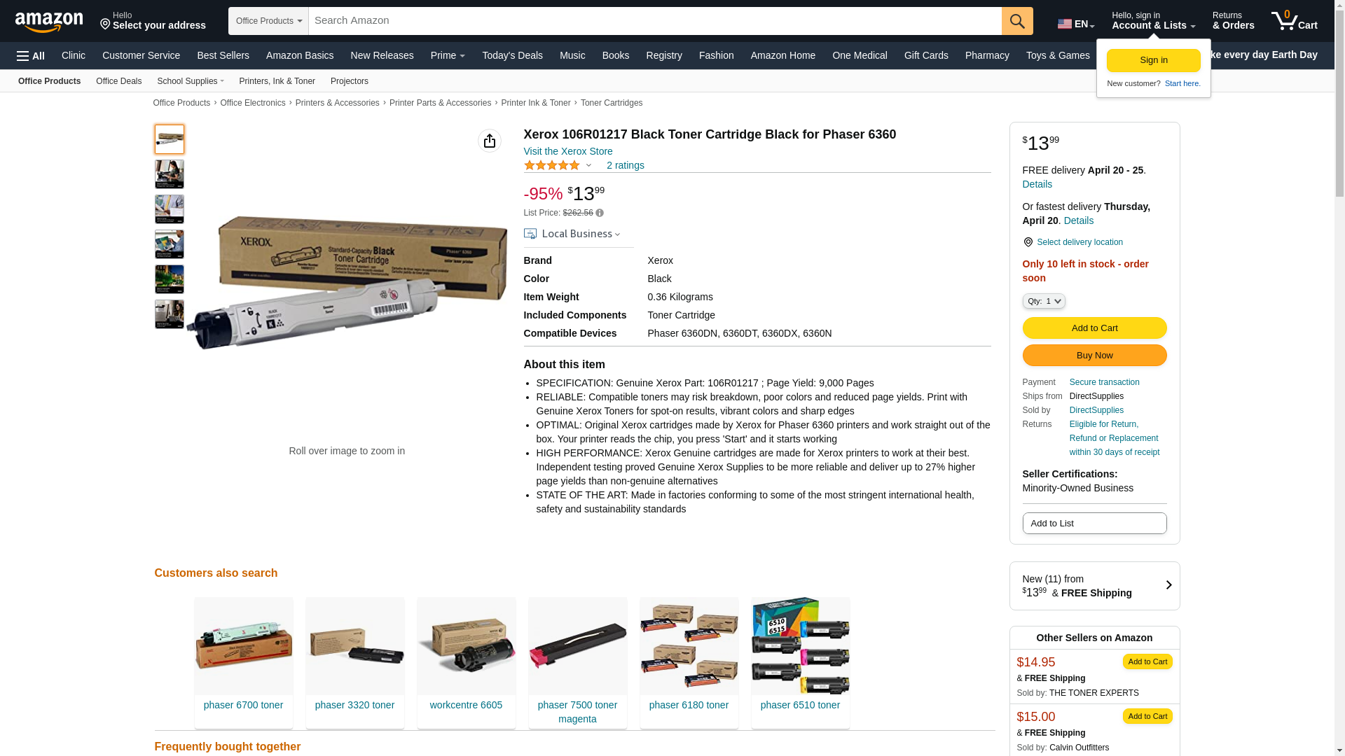 | Feature | Xerox 106R01217 OEM Toner - Phaser(R) 6360 Black Toner (9000 Yield) |