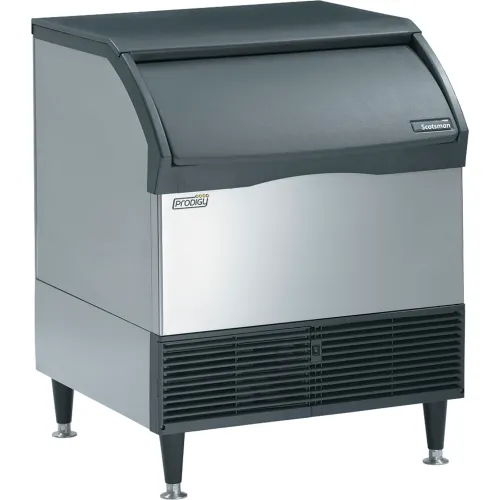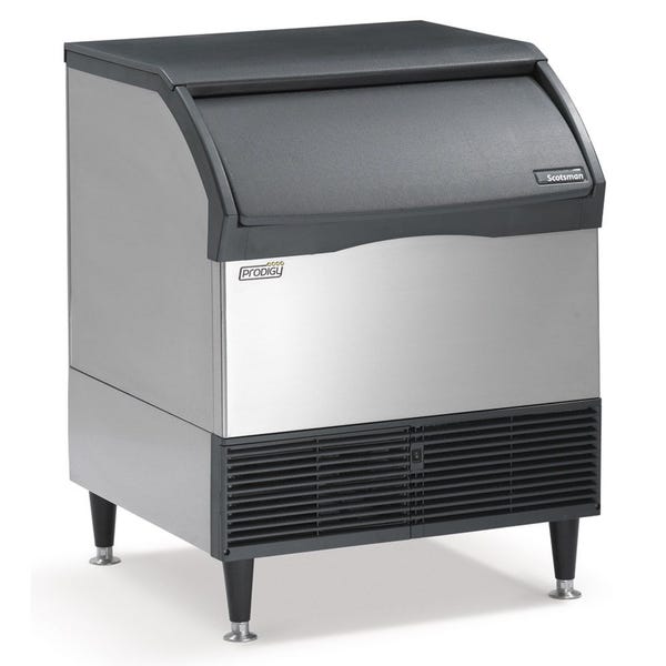 Scotsman's Prodigy Ice Maker With Bin, cube style, air-cooled, self-contained condenser, 110 lb bin storage capacity, up to 250 lb production/24 hours, Auto-alert indicator lights, front removable air filter, stainless steel finish, small cube size, includes 6" legs, 208-230v/60/1-ph, NSF, cULus. 3 year parts & labor warranties. 5 year parts on compressor & condenser. 5 year parts & labor on evaporator.