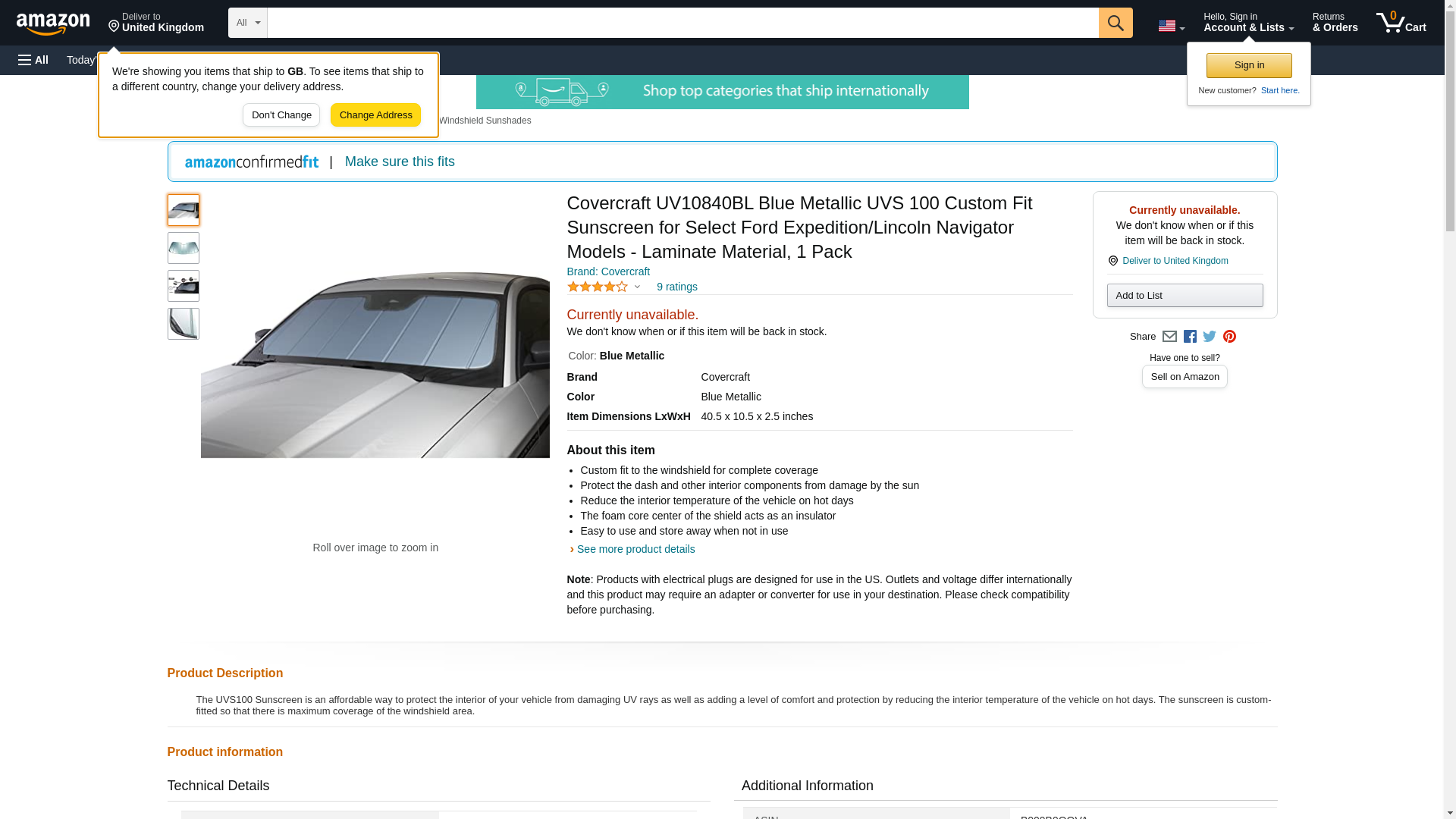 Covercraft UV10840BL Blue Metallic UVS 100 Custom Fit Sunscreen for Select Ford Expedition/Lincoln Navigator Models - Laminate Material, 1 Pack