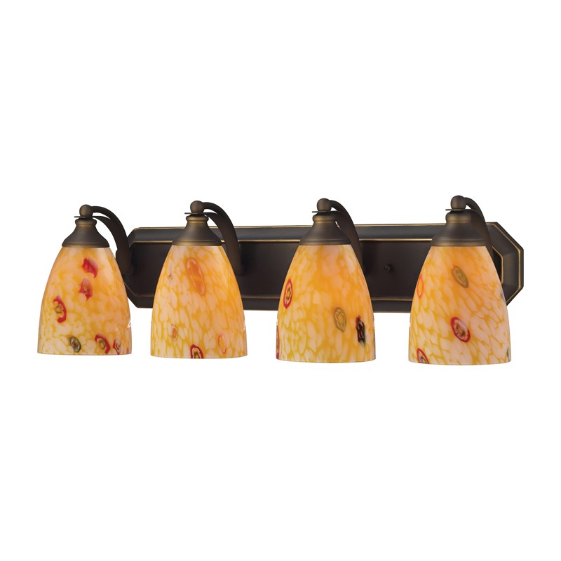 - ELK Lighting 4 Light Vanity In Aged Bronze And Yellow Blaze Glass 570-4B-YW