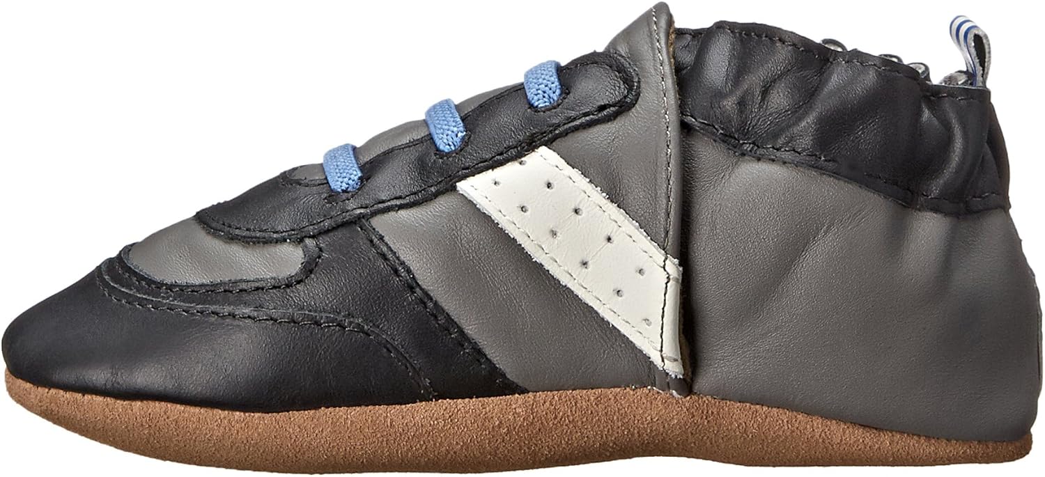 Baby's first sneaker! This athletic inspired sneaker works great with any outfit and features dazzling blue perforated leather and solid navy leather upper with white faux laces.