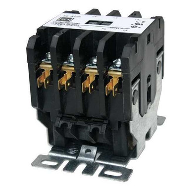 Eaton C25END430T Definite Purpose Contactor, 50mm, 4 Poles, Screw/Pressure Plate, Quick Connect Side By Side Terminals, 30A Current Rating, 2 Max HP Single Phase at 115V, 10 Max HP Three Phase at 230V, 15 Max HP Three Phase at 480V, 24VAC Coil Voltage