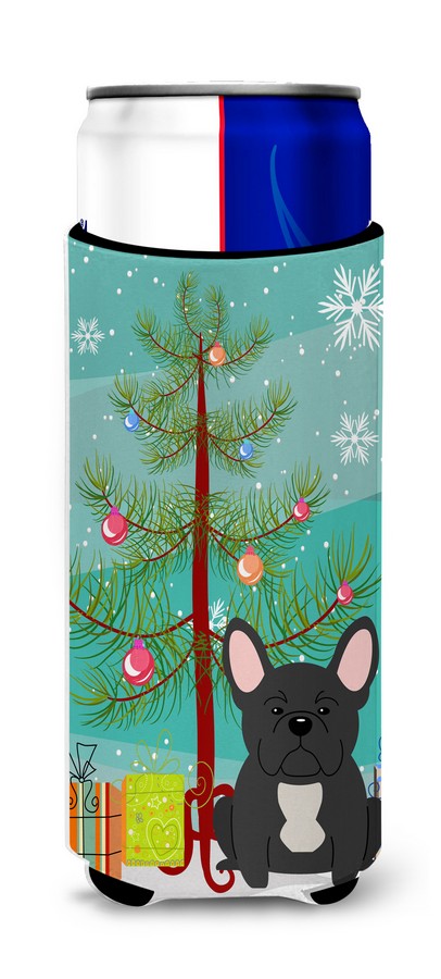 Carolines Treasures BB4139MUK Merry Christmas Tree French Bulldog Black Michelob Ultra Hugger for Slim Cans