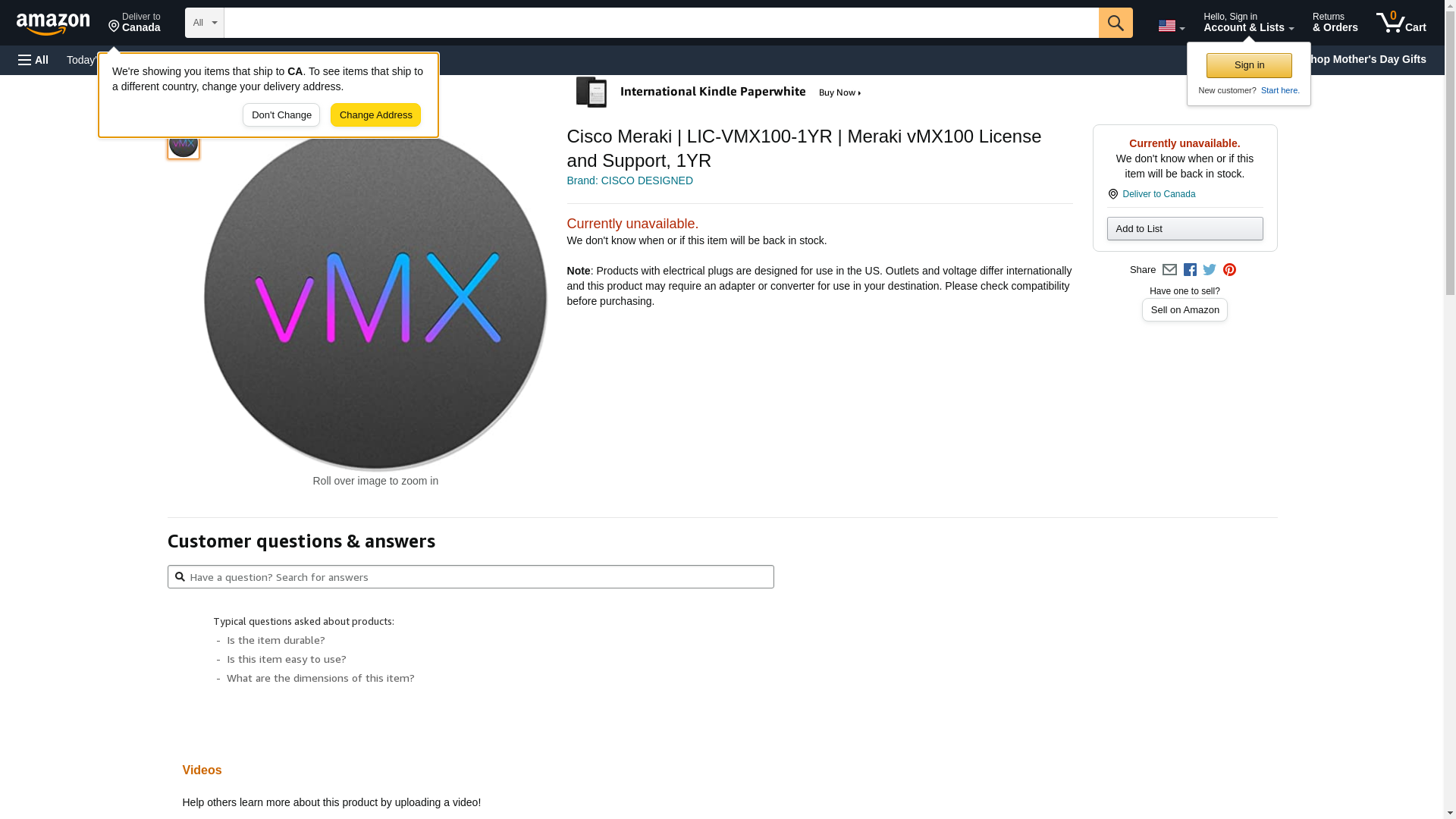 Cisco Meraki VMX100 - subscription license (1 year) + 1 Year Support - 1 virtual machine | Grand & Toy