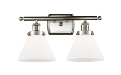 INNOVATIONS LIGHTING 916-2W-SN-G41 BALLSTON LARGE CONE 2 LIGHT 16 INCH MATTE WHITE GLASS VANITY LIGHT, BRUSHED SATIN...