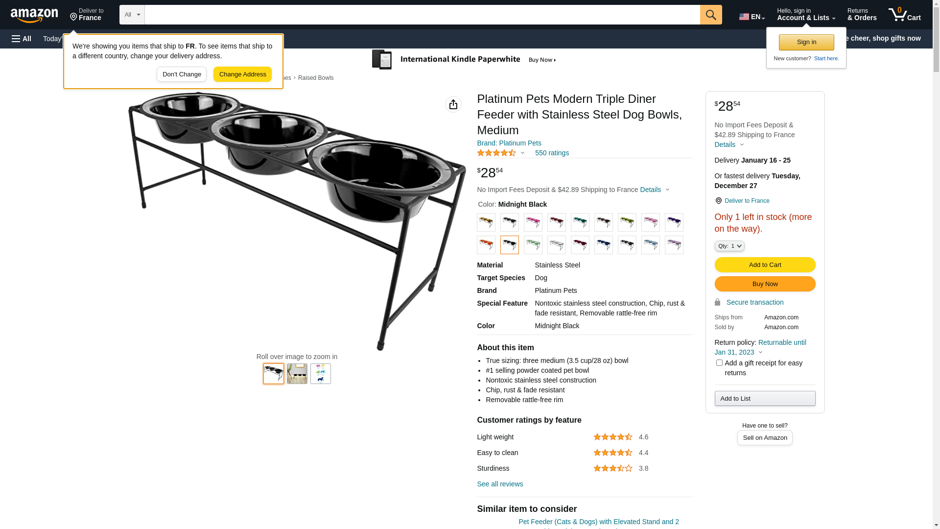 Platinum Pets Triple Diner Feeder with Stainless Steel Dog Bowls, 3.5 cup/28 oz, Midnight Black