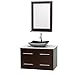 Wyndham Collection Centra 36 inch Single Bathroom Vanity in Espresso, White Carrera Marble Countertop, Altair Black Granite Sink, and 24 inch Mirror