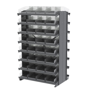 Akro-Mils APRD150SC 2-Sided Pick Rack with 64 Shelf Bins, 12", Gray/Clear